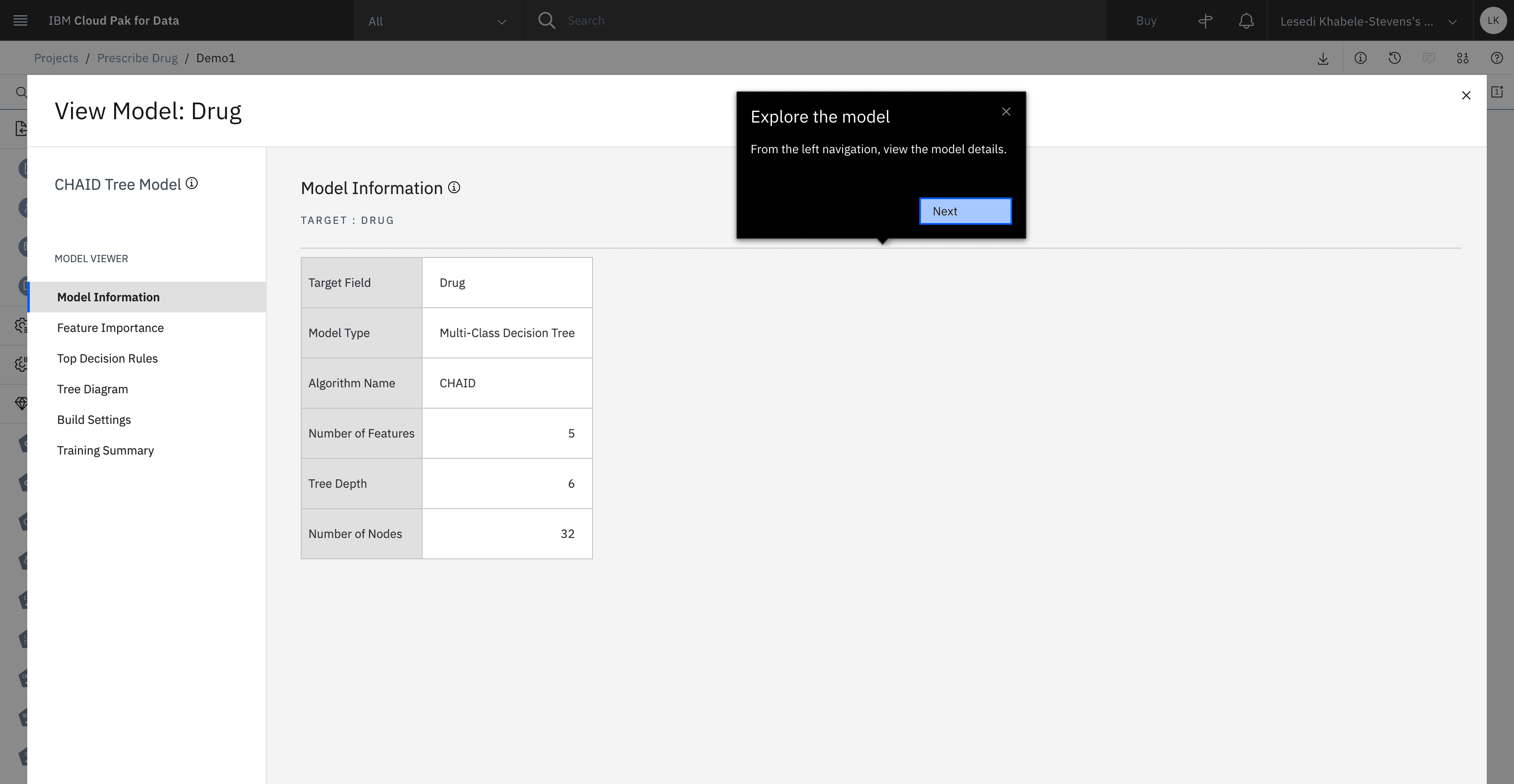 The Modeler Design team built a Guided Tour that introduced first-time users to Modeler by guiding them through the process of building a classification model.