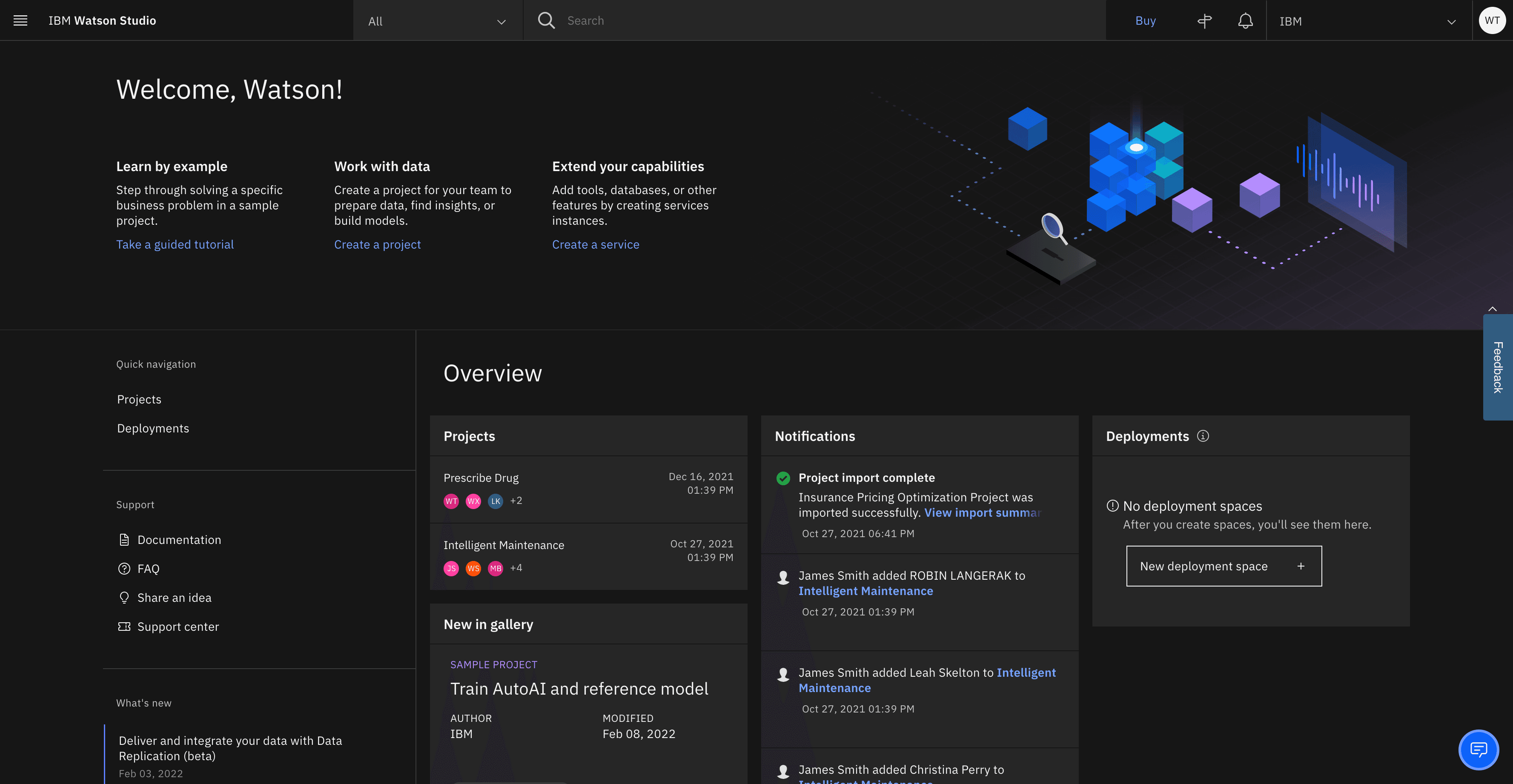 Consider end-to-end integrated tour across Watson Studio