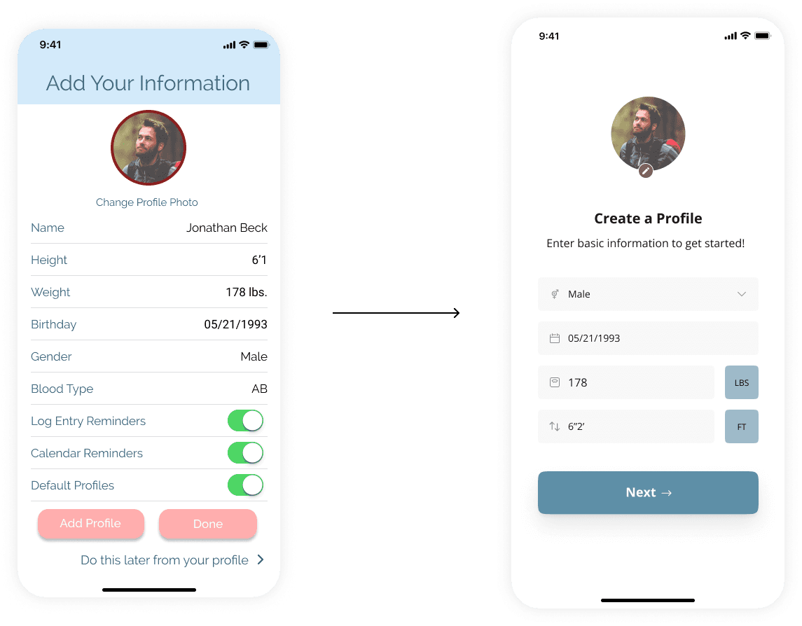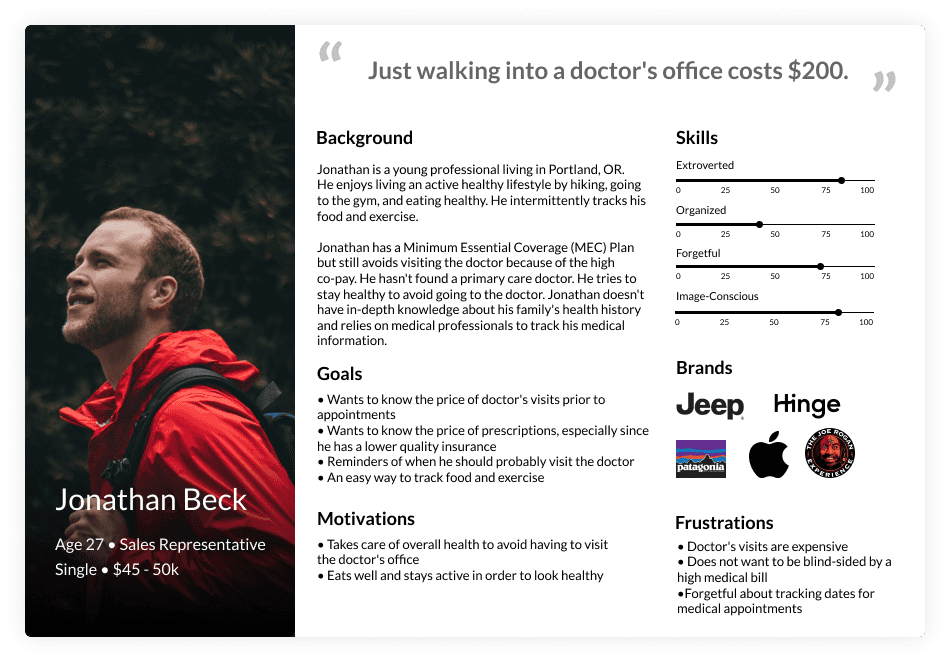 We deemed it important that the app address a wide-range of health situations, so we began by identifying two potential users and created proto-personas: