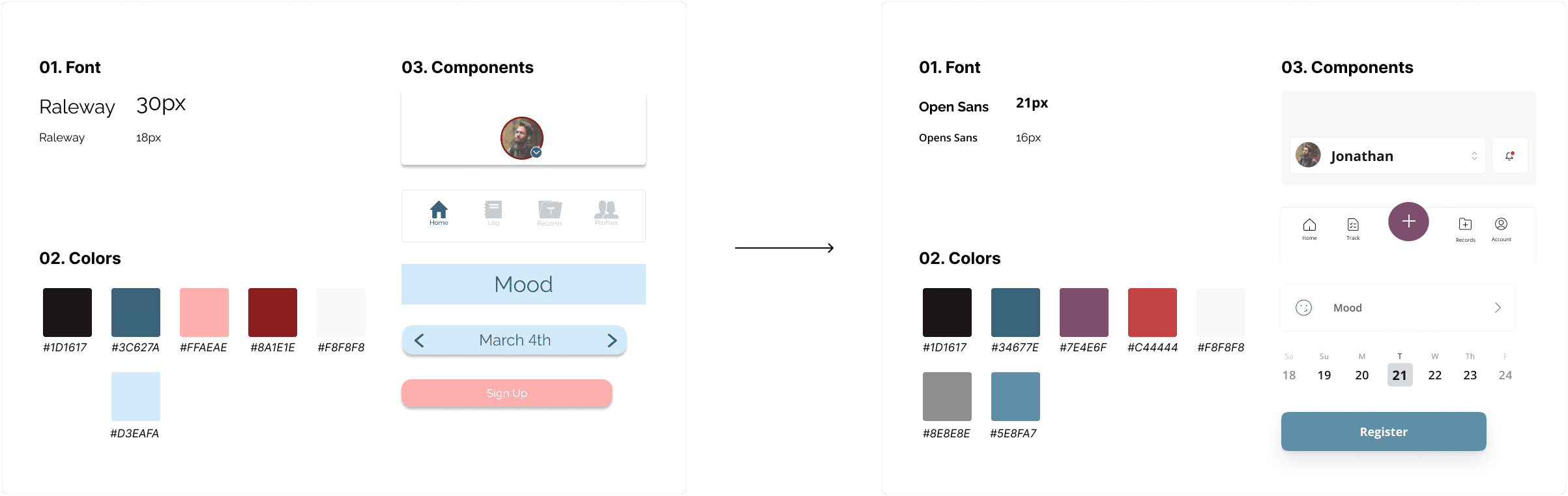 I kept the blue/gray color as the primary color and swapped the bubblegum pink for a raspberry pink, which met accessibility standards. The simple change of color improved the over feel of the app.